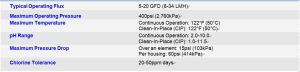 Flux specifications are based on fouling free water at 410psi operating pressure (2,827kPa), 77°F (25°C), and 10% recovery.Individual element flux may vary ± 25%.